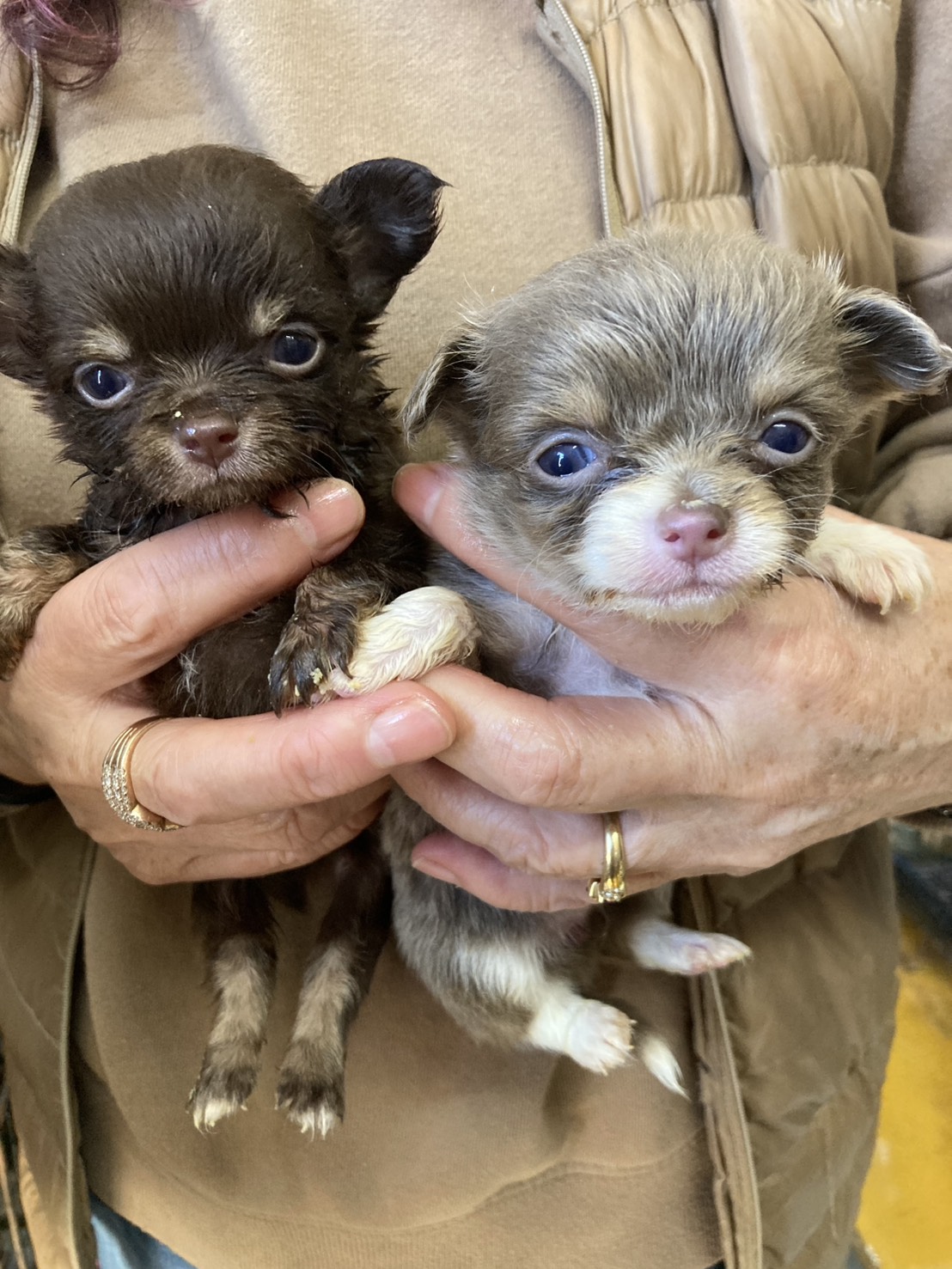 可愛らしいチワワの兄妹の紹介です🥰 今は離乳食の練習中で、一生懸命ご飯を食べて、元気に過ごしています☺️ 是非お気軽にお問い合わせ下さい🙇