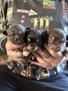 こんにちは、可愛いチワワ達の紹介です! 今回は希少色ブルー(一番左)の女の子ないるチワワの三兄妹🥰 ブルーの子以外もとても可愛いらしいお顔で、遊び好きの元気一杯の子達です! 是非お問い合わせ下さい🙇